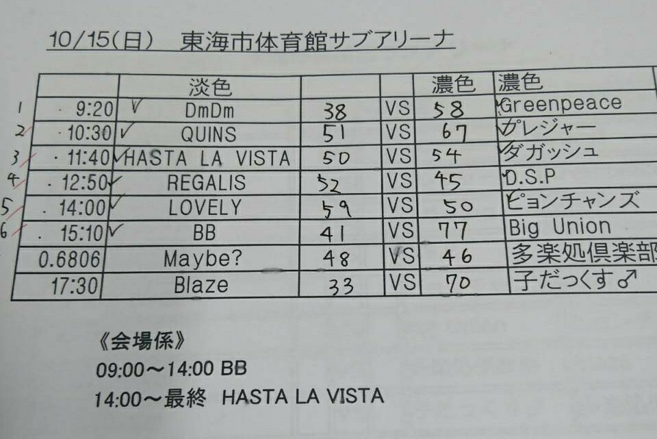 クラブG | BISONS | チーム63 | ally | aspiration | ピジョン | 多楽処倶楽部 | Fumble | Maybe? |