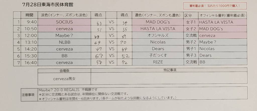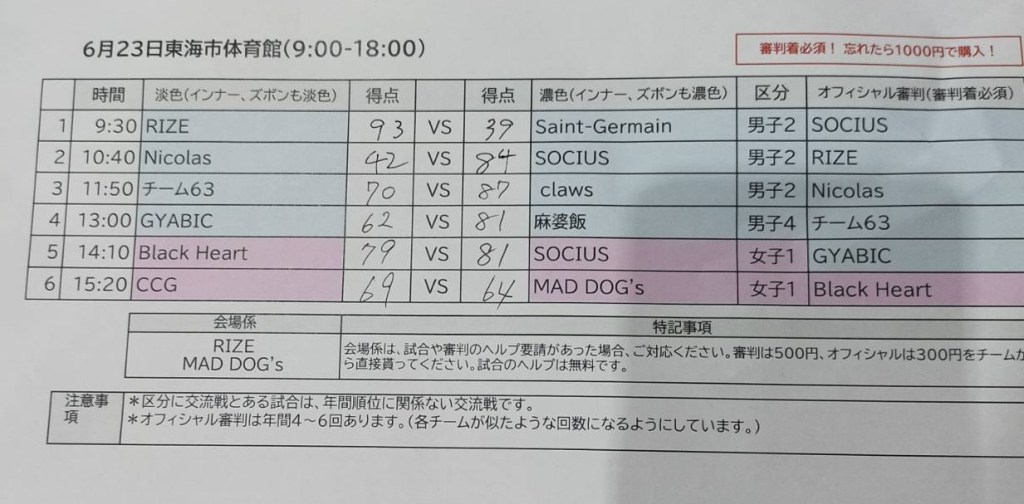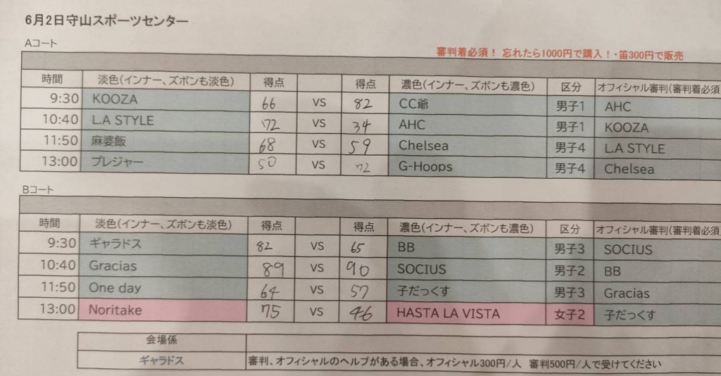 6月2日 守山スポーツセンター試合結果