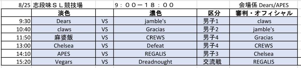 8月25日 志段味スポーツランド 試合予定