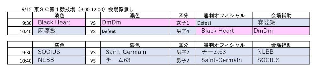 9月15日 東スポーツセンター 試合予定