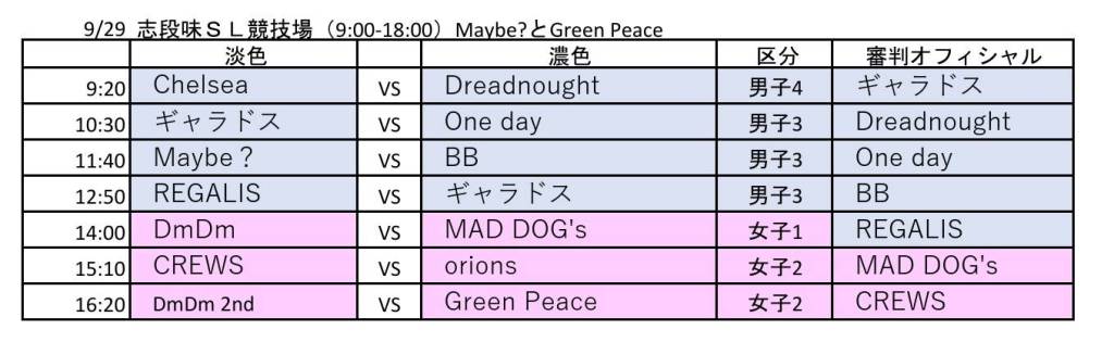 9月29日 志段味スポーツランド 試合予定