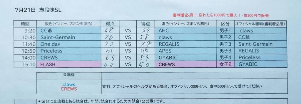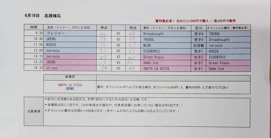 6月16日 志段味スポーツランド 試合結果